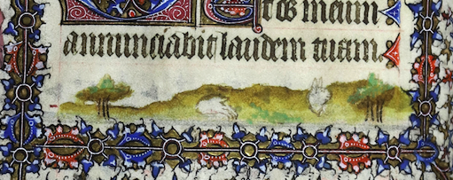 Another manuscript from the Bedford group, which was previously owned by Chester Beatty, has very similar bas-de-page. The manuscript was split up, with leaves in the Princeton University Art Museum, the Museum of Fine Arts Boston, and private collections.