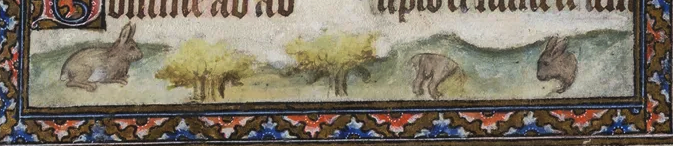 If we assume that the bas-de-page is from a later hand, this has a significant implication for the provenance of both manuscripts. Considering that these two manuscripts come from the same artist, and were/are of high quality and value, it would suggest that an incredibly wealthy patron owned both of the books after ~1420 and commissioned an artist to fill in the extra space with the bas-de-page. I don't have any further conclusions, nor conclusive evidence that the bas-de-page are a later addition. In either case these manuscripts are closely linked together and these bas-de-page may hold an important clue regarding an early patron, which can hopefully be uncovered in the future.