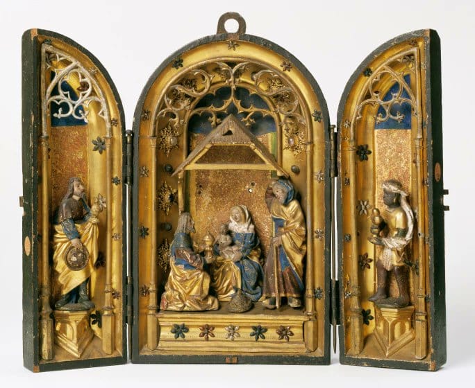 Up next are more sculptural works sold by Galerie Sismann. First of which is a gilded portable triptych from a known workshop in the first quarter 16th century. I spotted this one at auction earlier this year, where it was sold for 58,000 + 30% fees against a measly 400-600 EUR estimate.