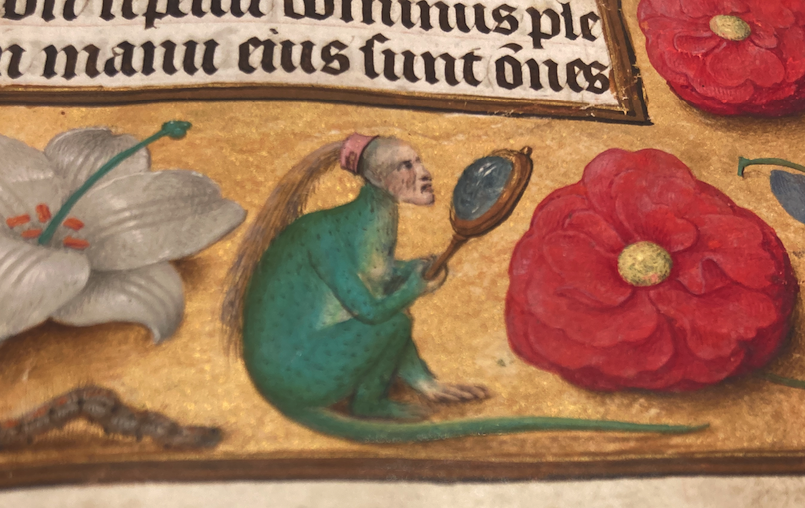 An interesting manuscript for display was a Book of Hours, for Dominican use (?). The manuscript has been stripped of its full page miniatures, but would originally have been an incredibly luxurious commission. The remaining 54 borders were illuminated by three artists, including the Master of the First Prayerbook of Maximillian I, who used similar models for the border decorations to the Rothschild hours.