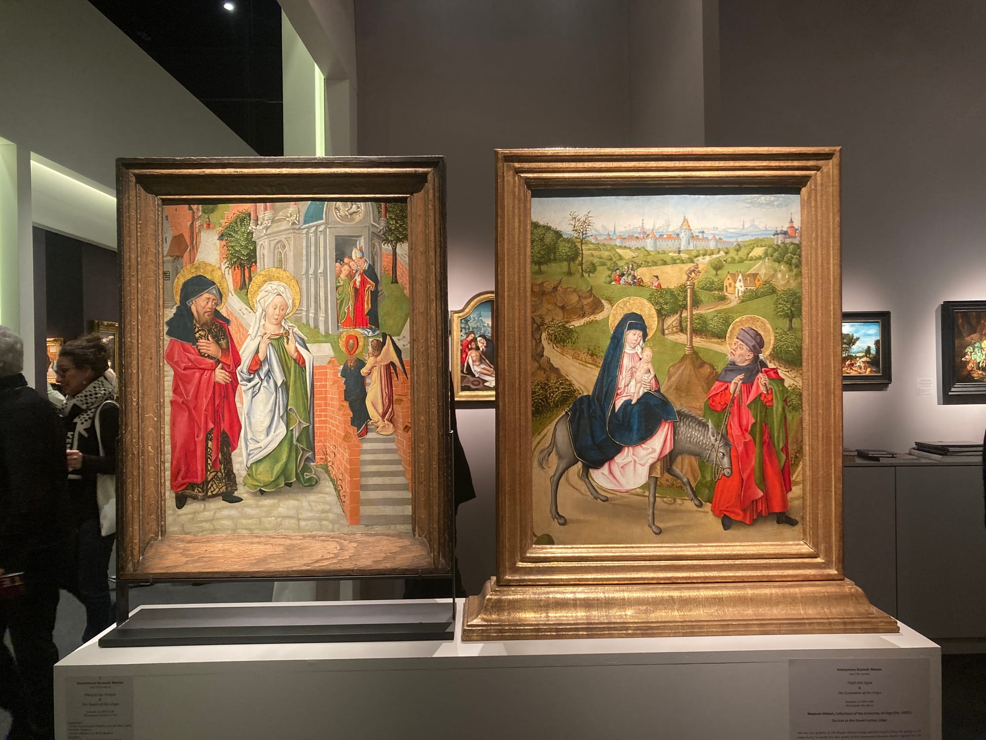 At Galerie Pelgrims de Bigard there was a very unique presentation. A Netherlandish panel by an Anonymous Brussels artist was presented (left) next to another panel from the same altarpiece (right) on loan from a small museum, Museum Wittert in Liege.