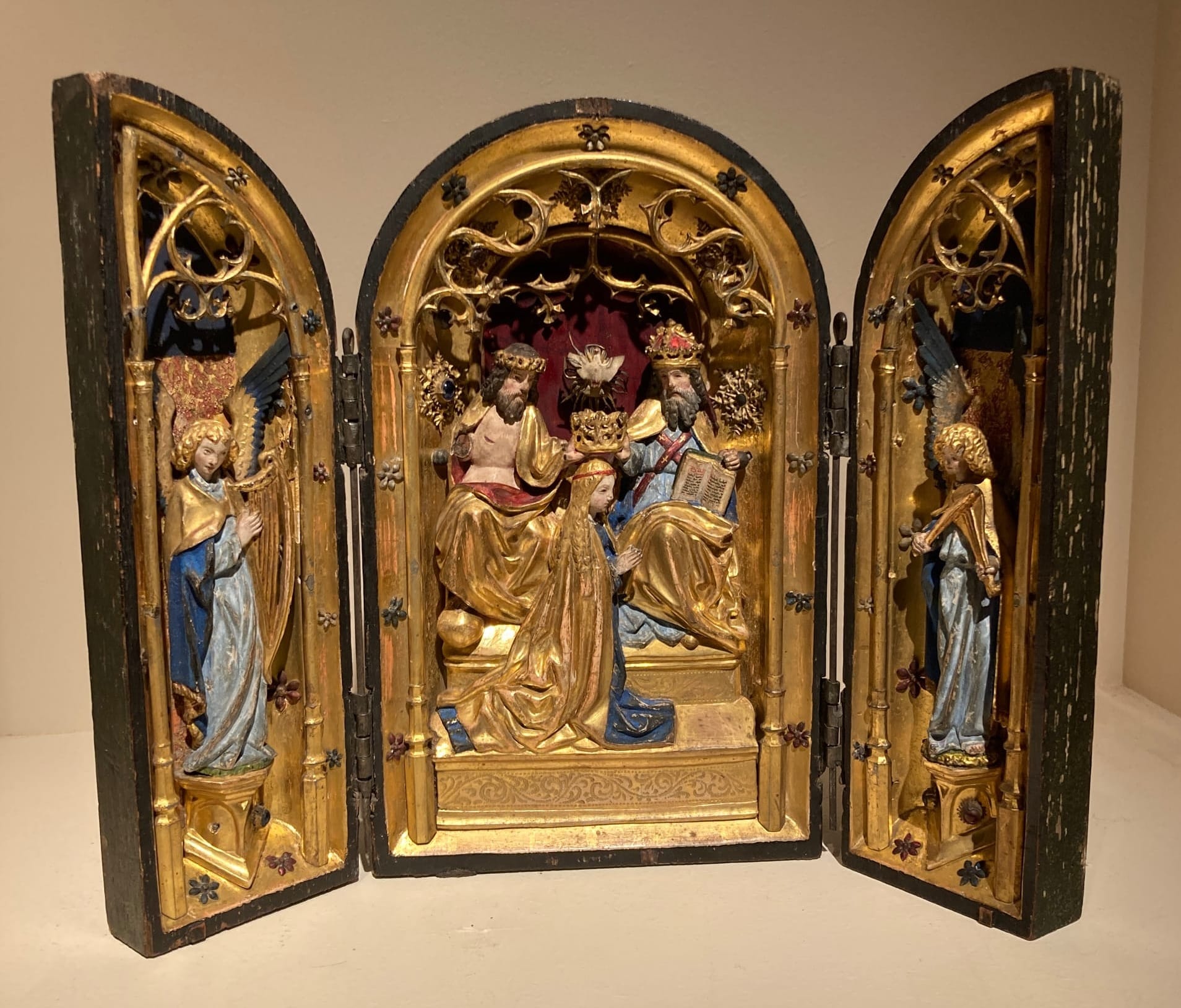 Up next are more sculptural works sold by Galerie Sismann. First of which is a gilded portable triptych from a known workshop in the first quarter 16th century. I spotted this one at auction earlier this year, where it was sold for 58,000 + 30% fees against a measly 400-600 EUR estimate.