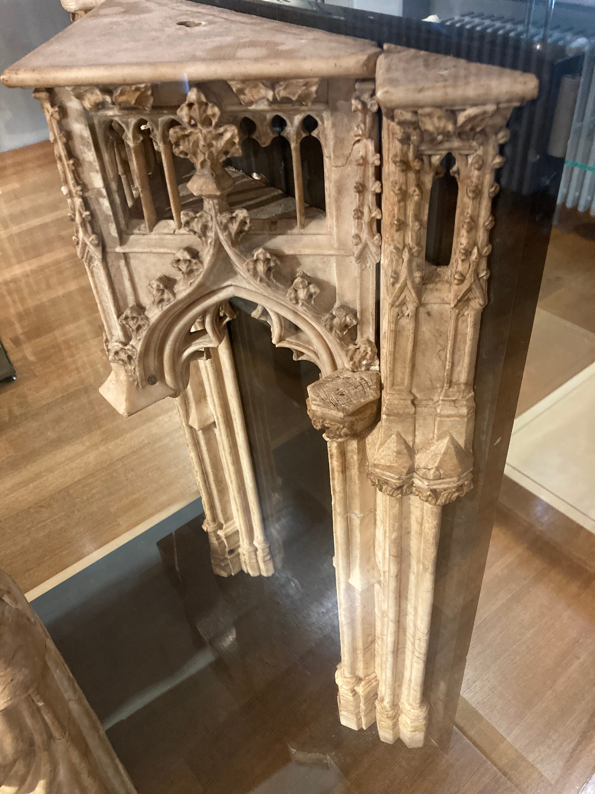 Claus Sluter is an incredibly important artist, and this is an incredibly important work. The Tomb of Phillip the Bold was looted during the French revolution and fragments were dispersed. Today there are a handful of Niches like this in varying museums such as the Museum Mayer van den Bergh in Antwerp and the Memorial Art Gallery at the University of Rochester.