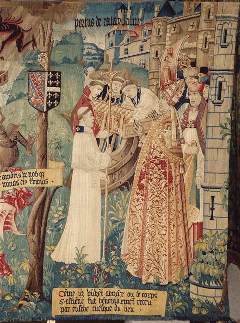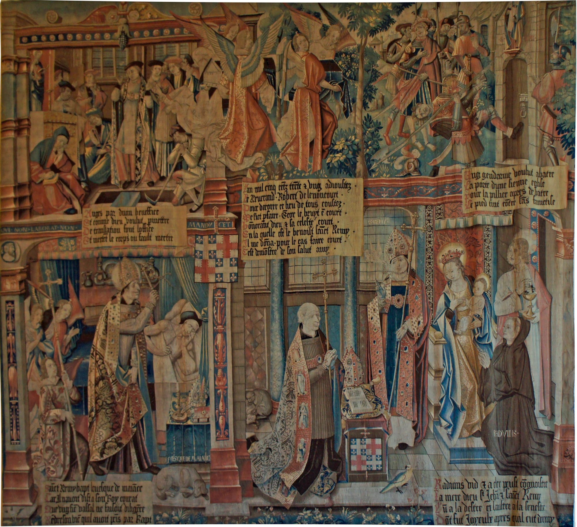 Gauthier de Campes designed a series of 17 tapestries for Robert de Lenoncourt, archbishop of Reims and abbot commendatory of the’abbaye Saint-Remi, to decorate the adjoining basilica. The tapestries were hung in the choir during certain religious festivals, illustrating the Life of the Virgin and the life of Saint Remi, bishop of Reims who baptized Clovis. The tapestries were delivered in 1530.