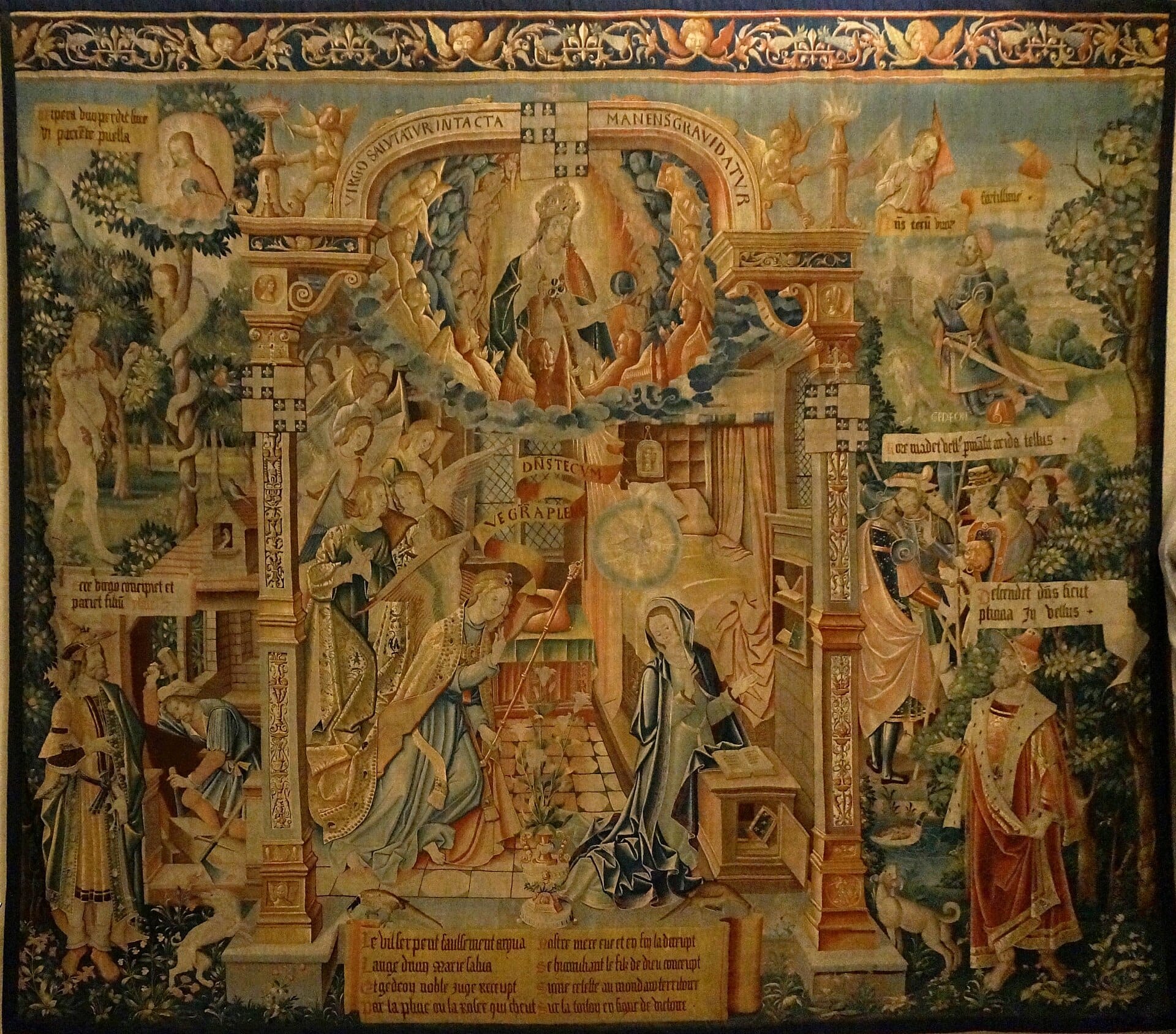 Interestingly, Jan Fabiaen was originally from Bethune in France and migrated to Bruges. Perhaps the French connection is how he became acquainted with our artist. Jan Fabiaen is one of half a dozen candidates who have been suggested as candidates to be identified with the Master of the Legend of Saint Lucy (see this article by Sacha Zdanov), however this is not widely accepted today and the mainline view is that the identity is rather with Fransoys vanden Pitte. It is still possible however; as Pierre-Gilles Girault notes that there is a tendency to incorporate tapestry elements in the paints of the Master of the Legend of Saint Lucy.